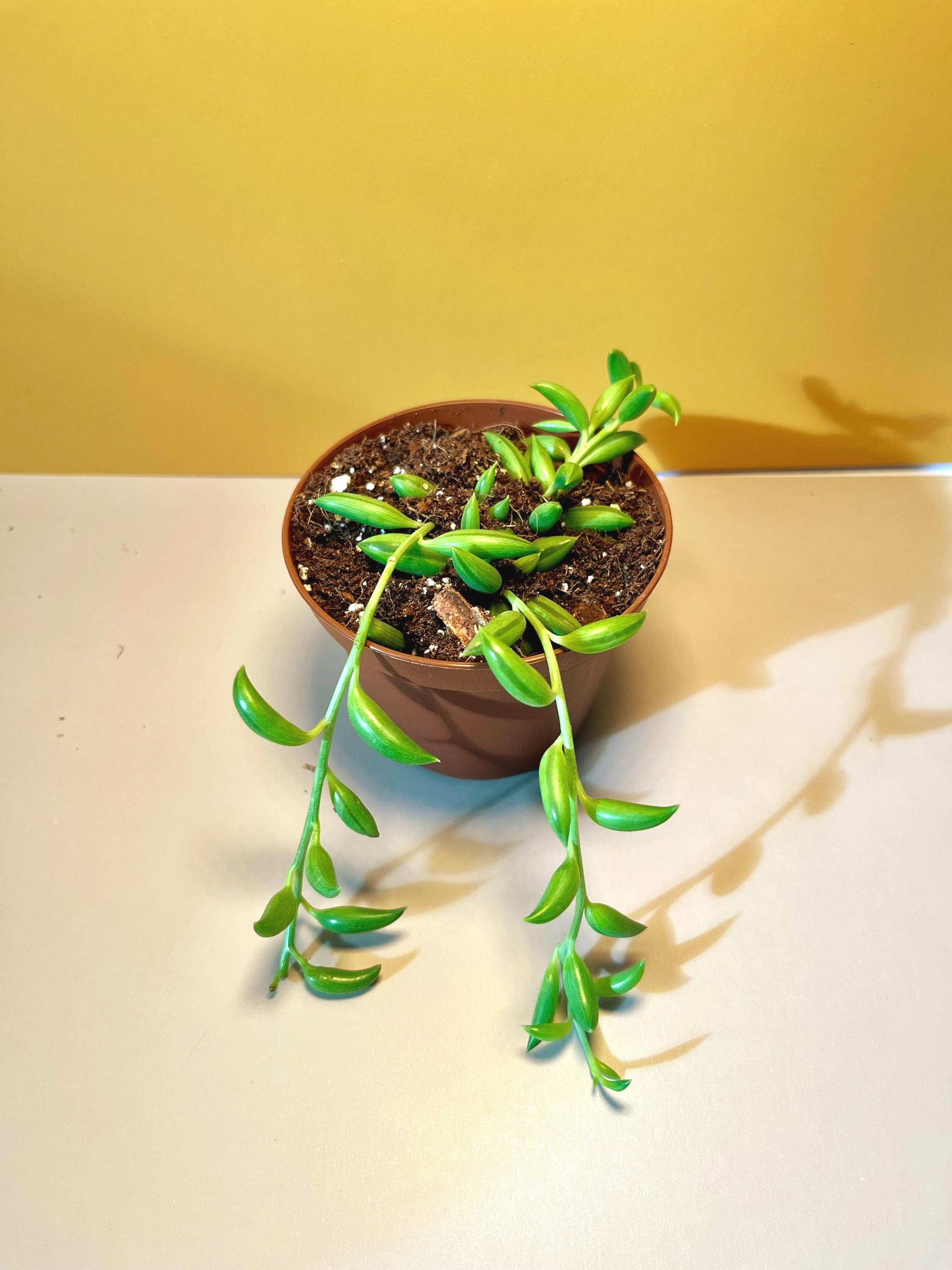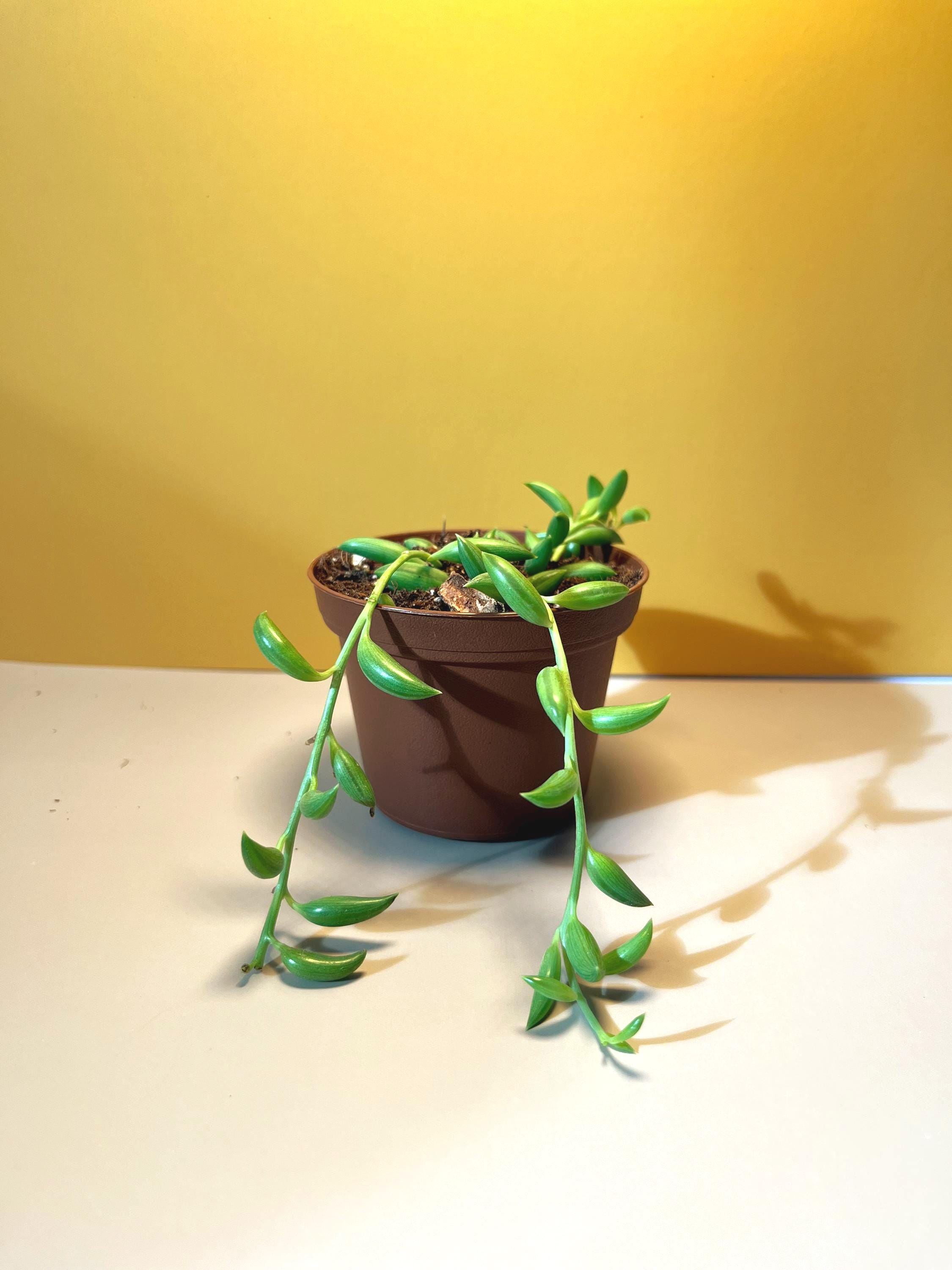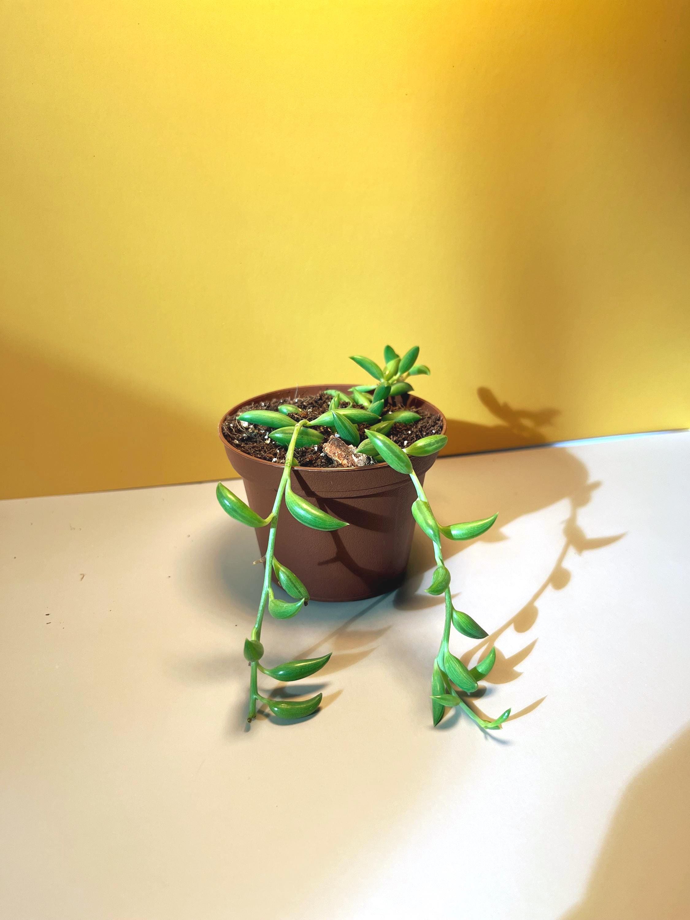 One String of Bananas (Senecio radicans) houseplant in a 2-inch nursery pot.