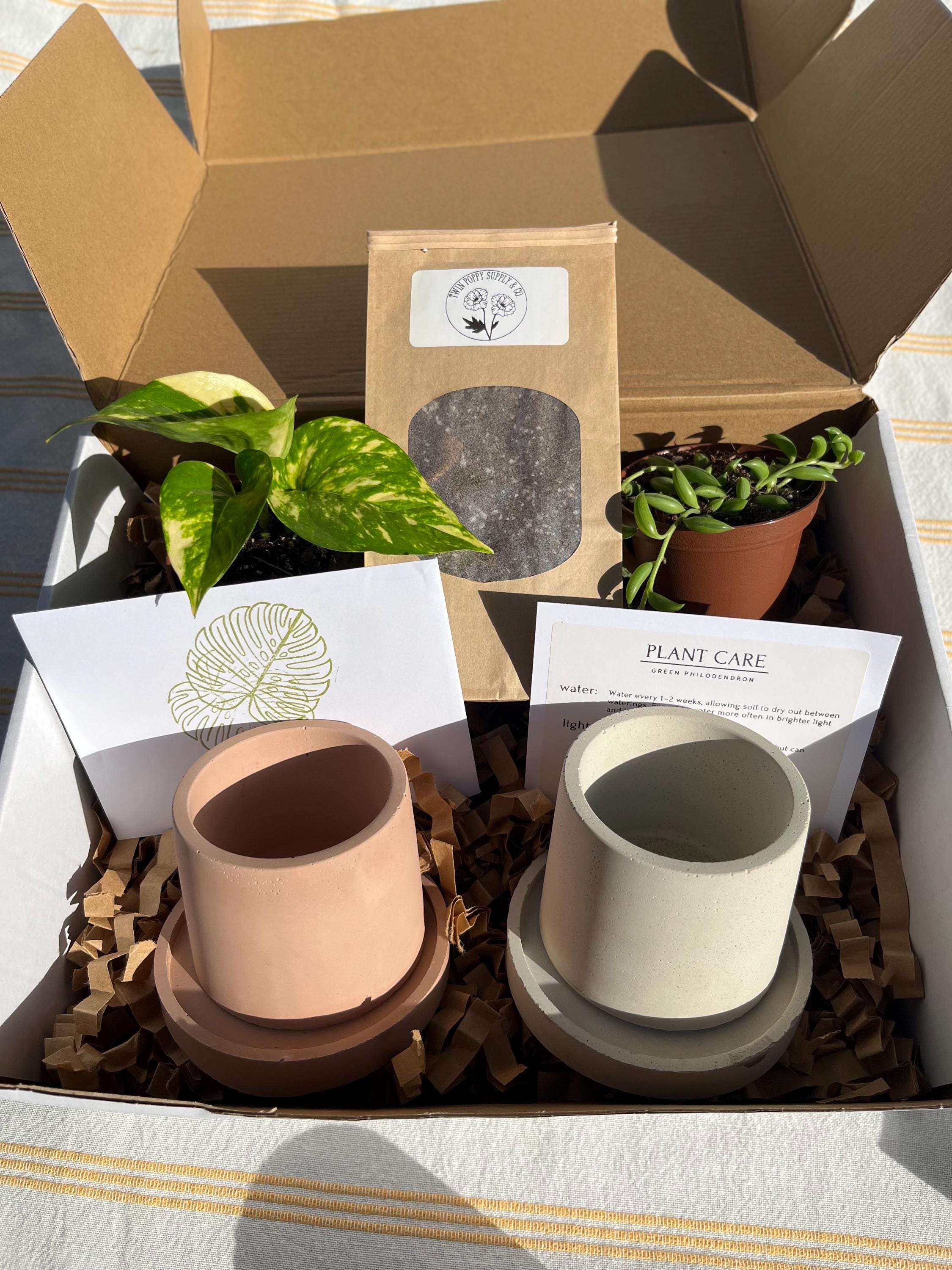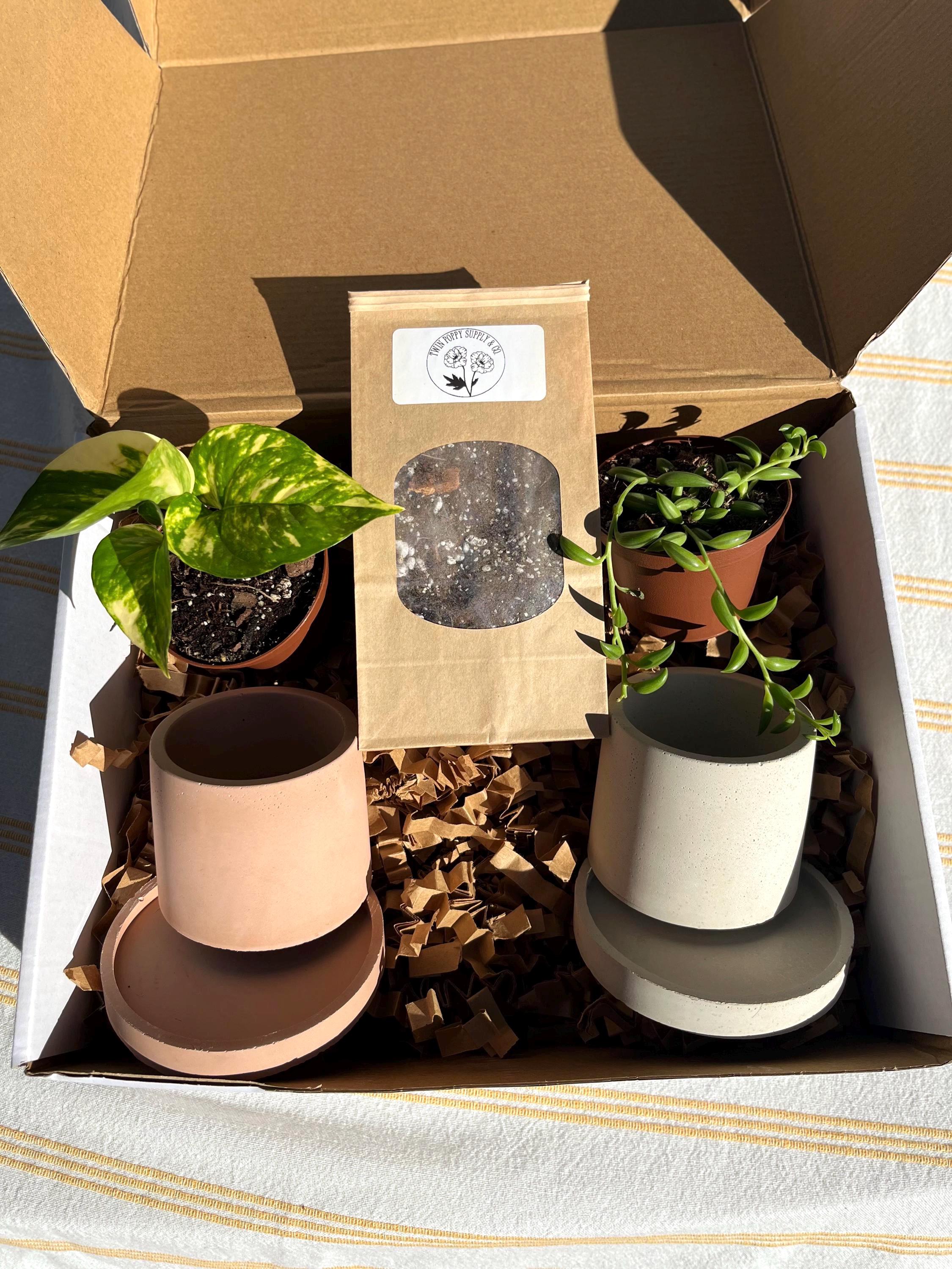 Plant Gift Box: Live Houseplants, Handmade Concrete Planters