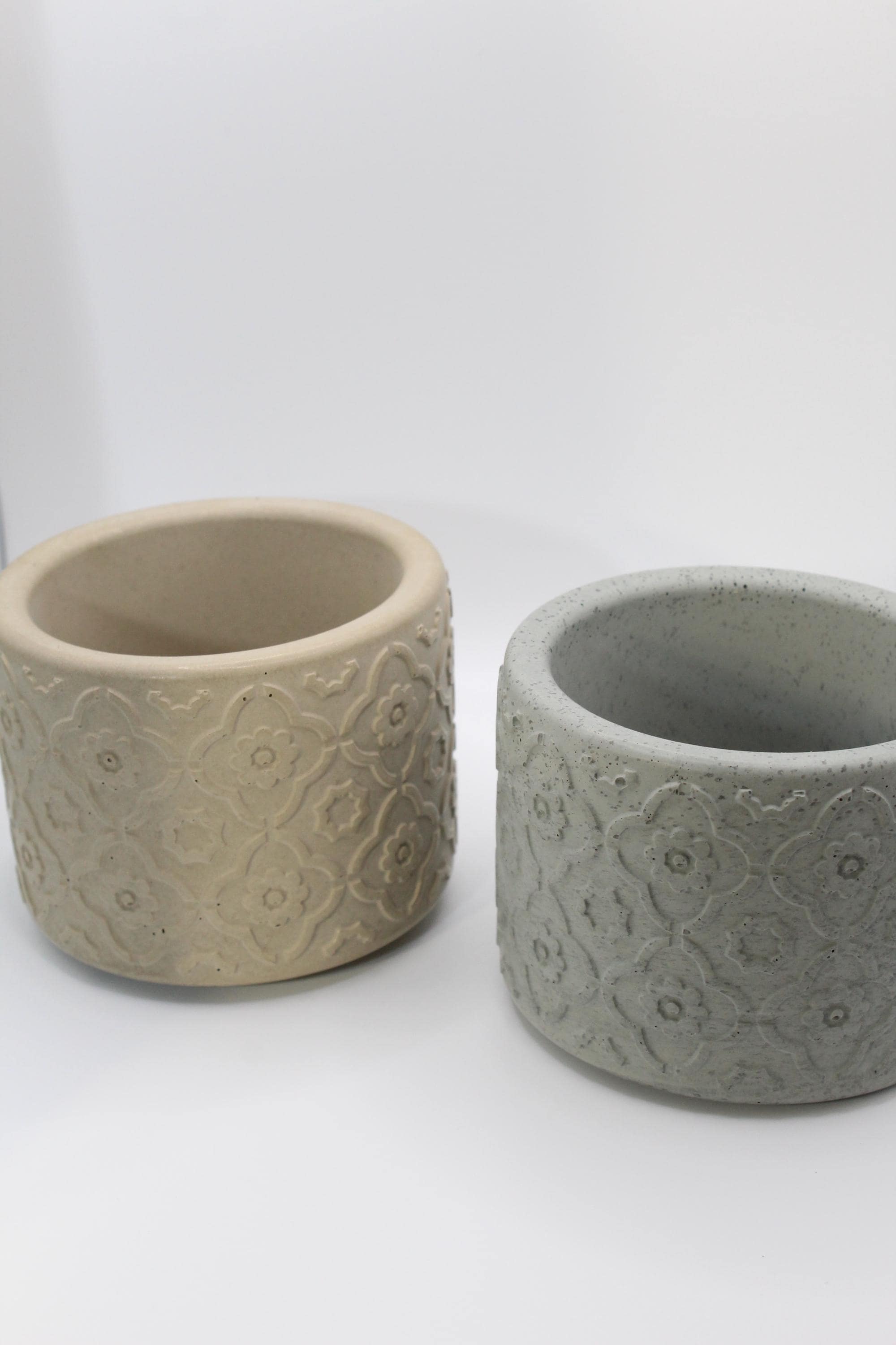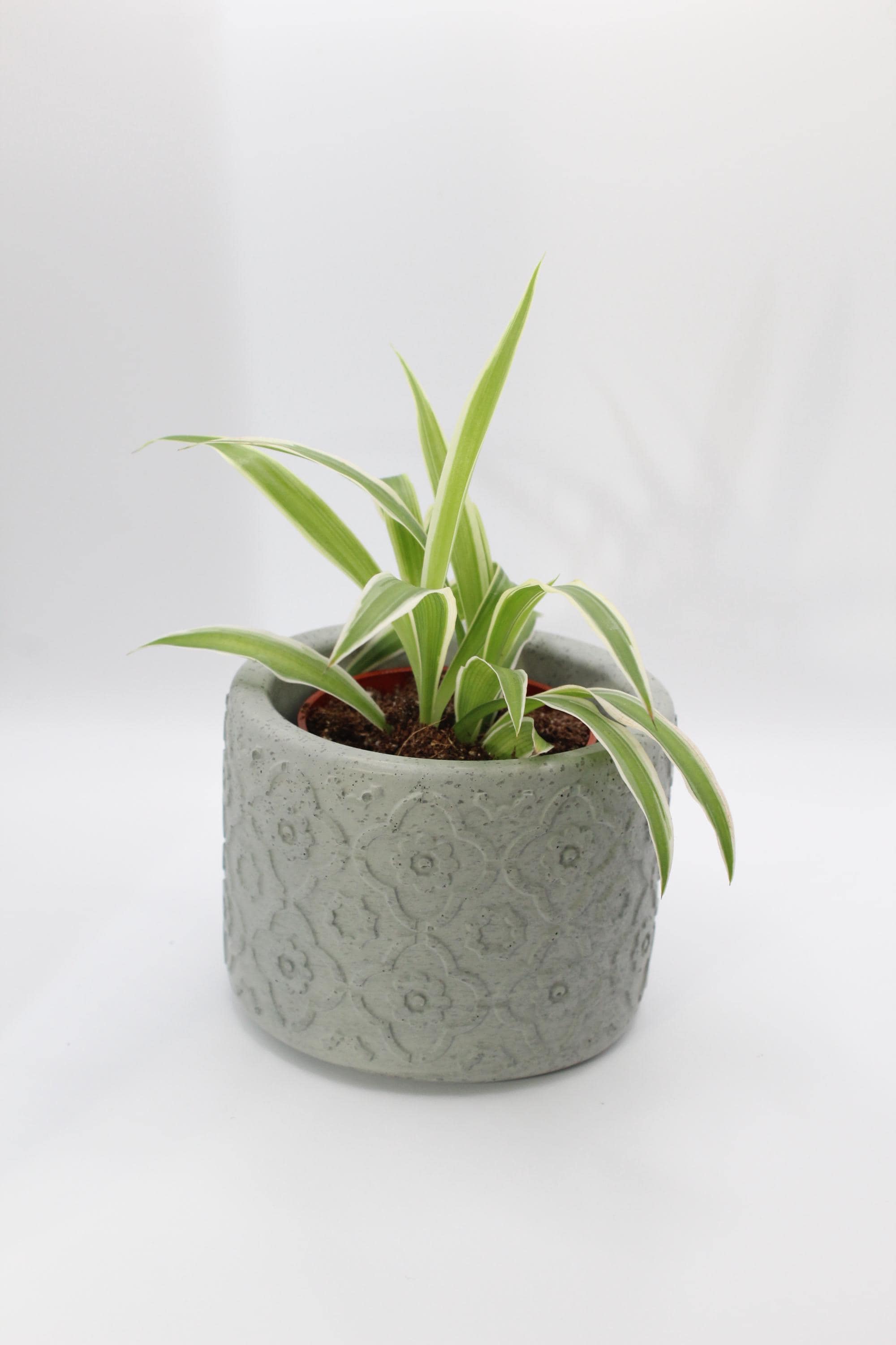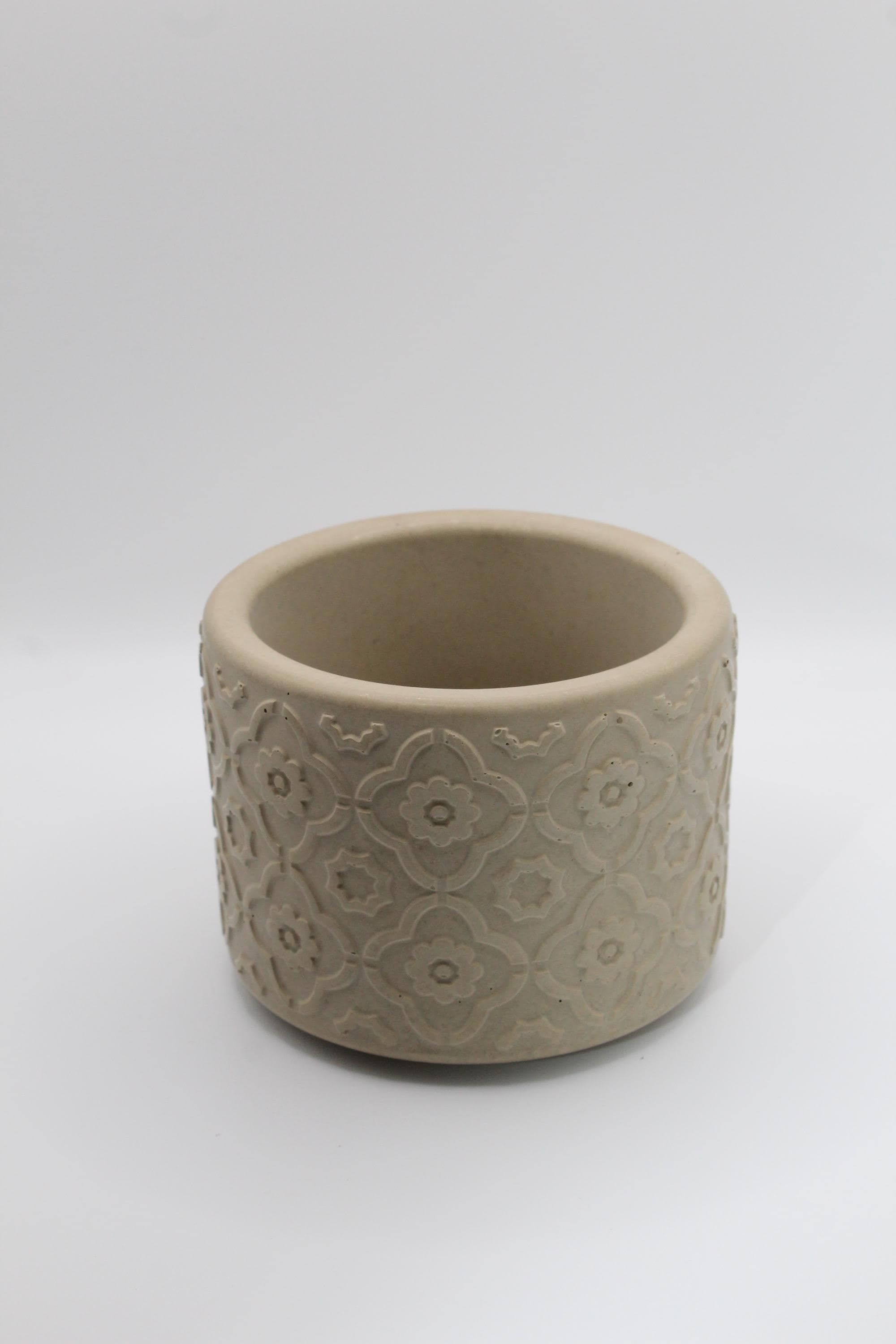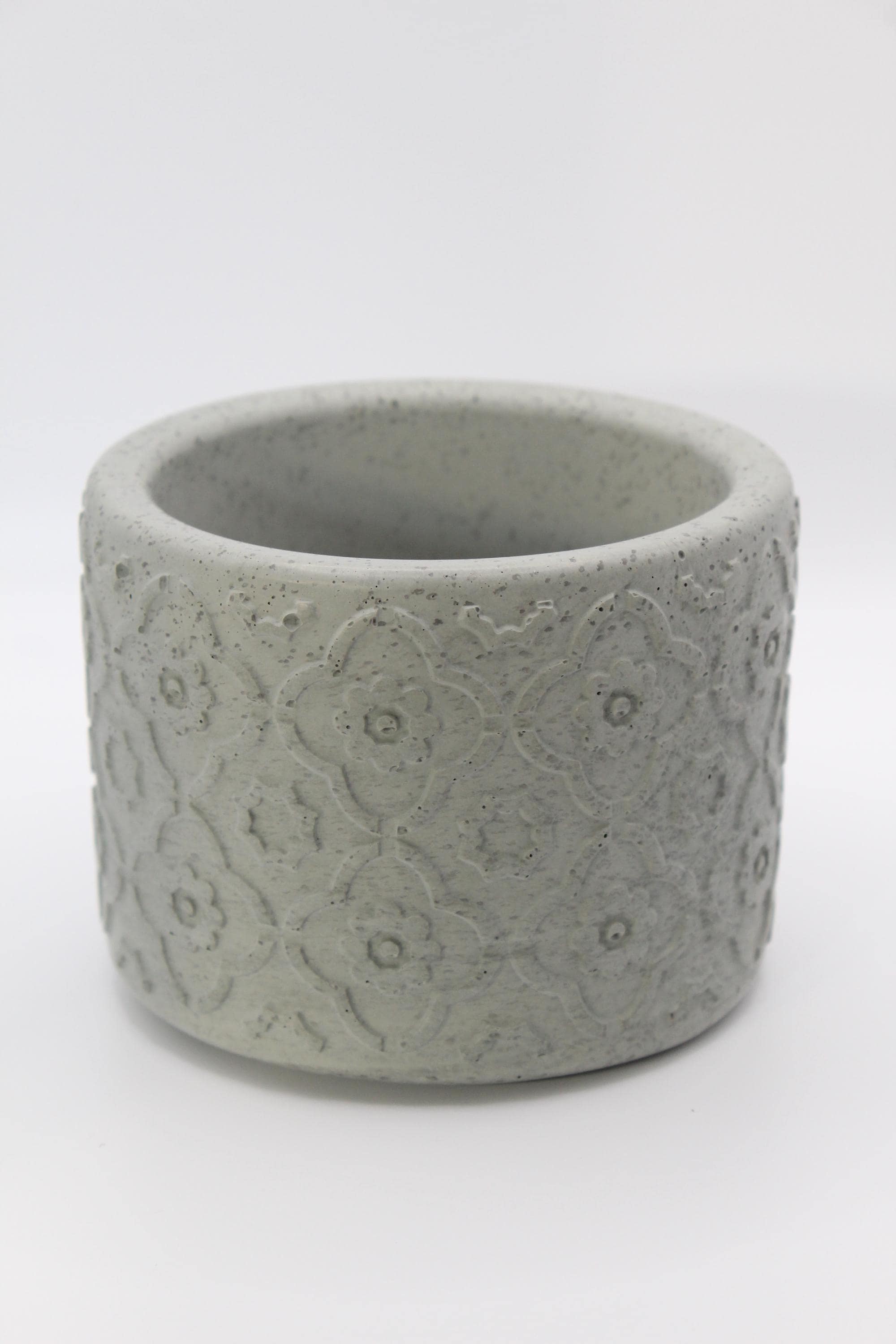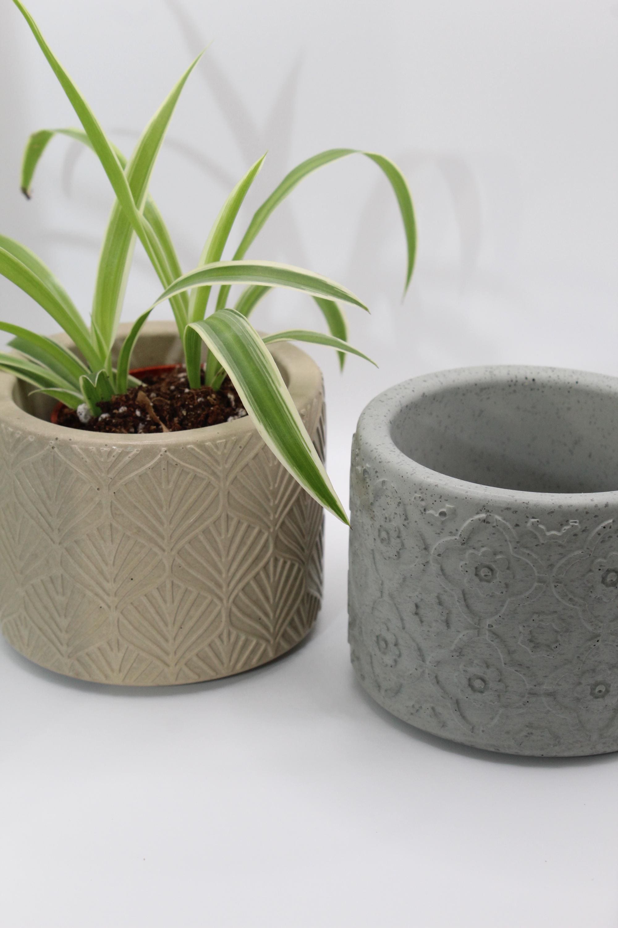 Elevate your plant display with this hand-poured concrete planter, thoughtfully designed to showcase your greenery while keeping a clean, modern look. Each piece features a hand-pressed botanical texture, adding subtle dimension and an organic feel to your space. Its soft, neutral tone blends effortlessly with any décor, making it the perfect home for your favorite small plants and a stylish accent for any shelf, windowsill, or tabletop.