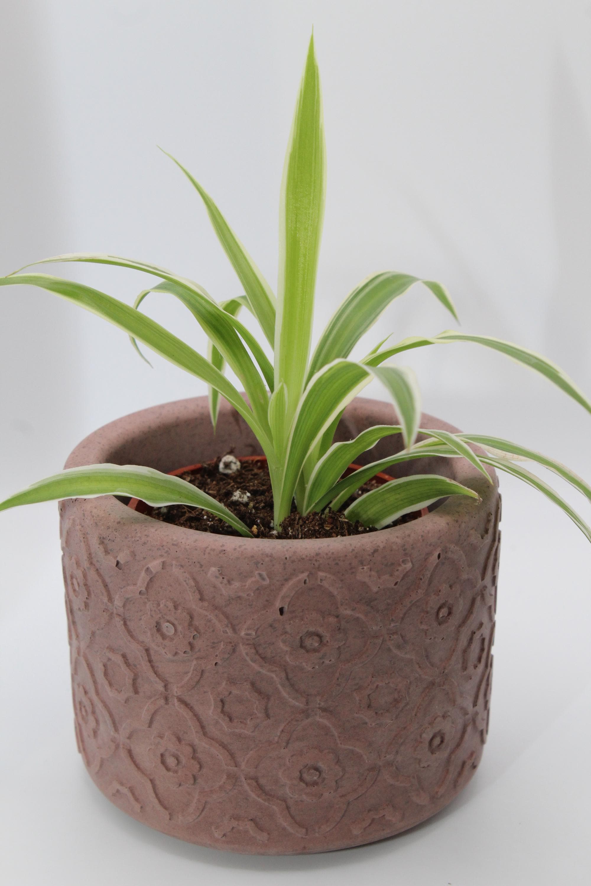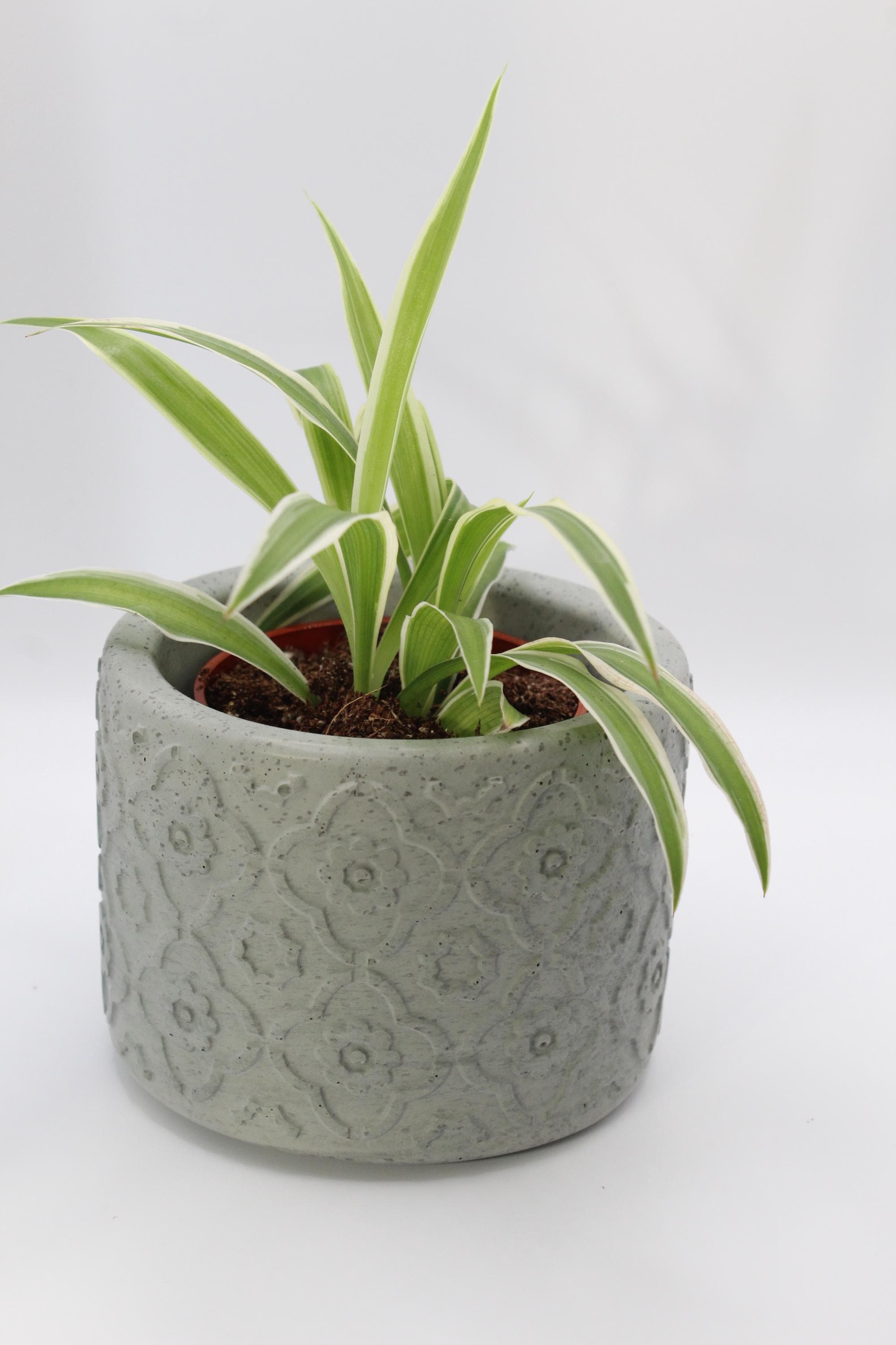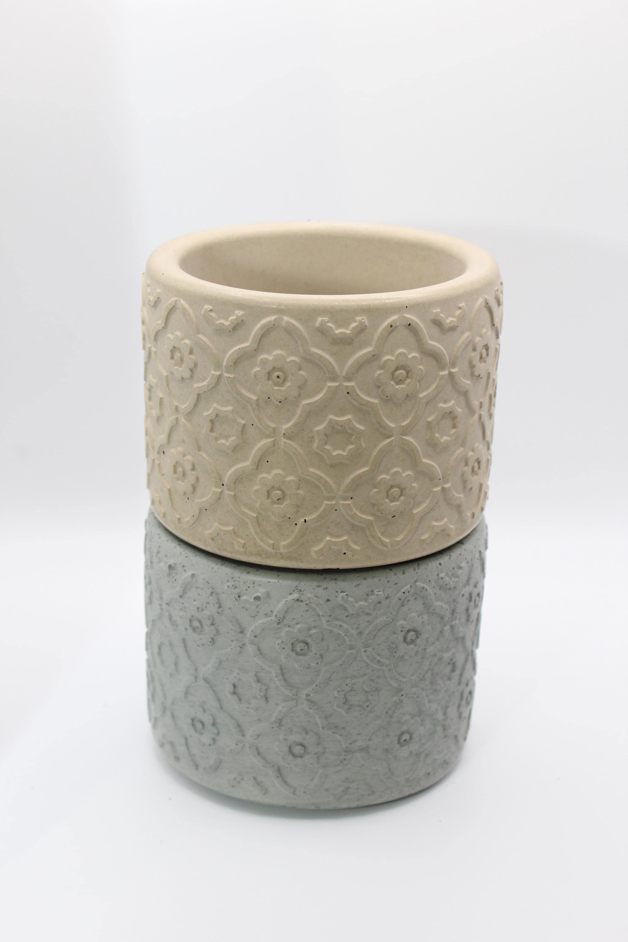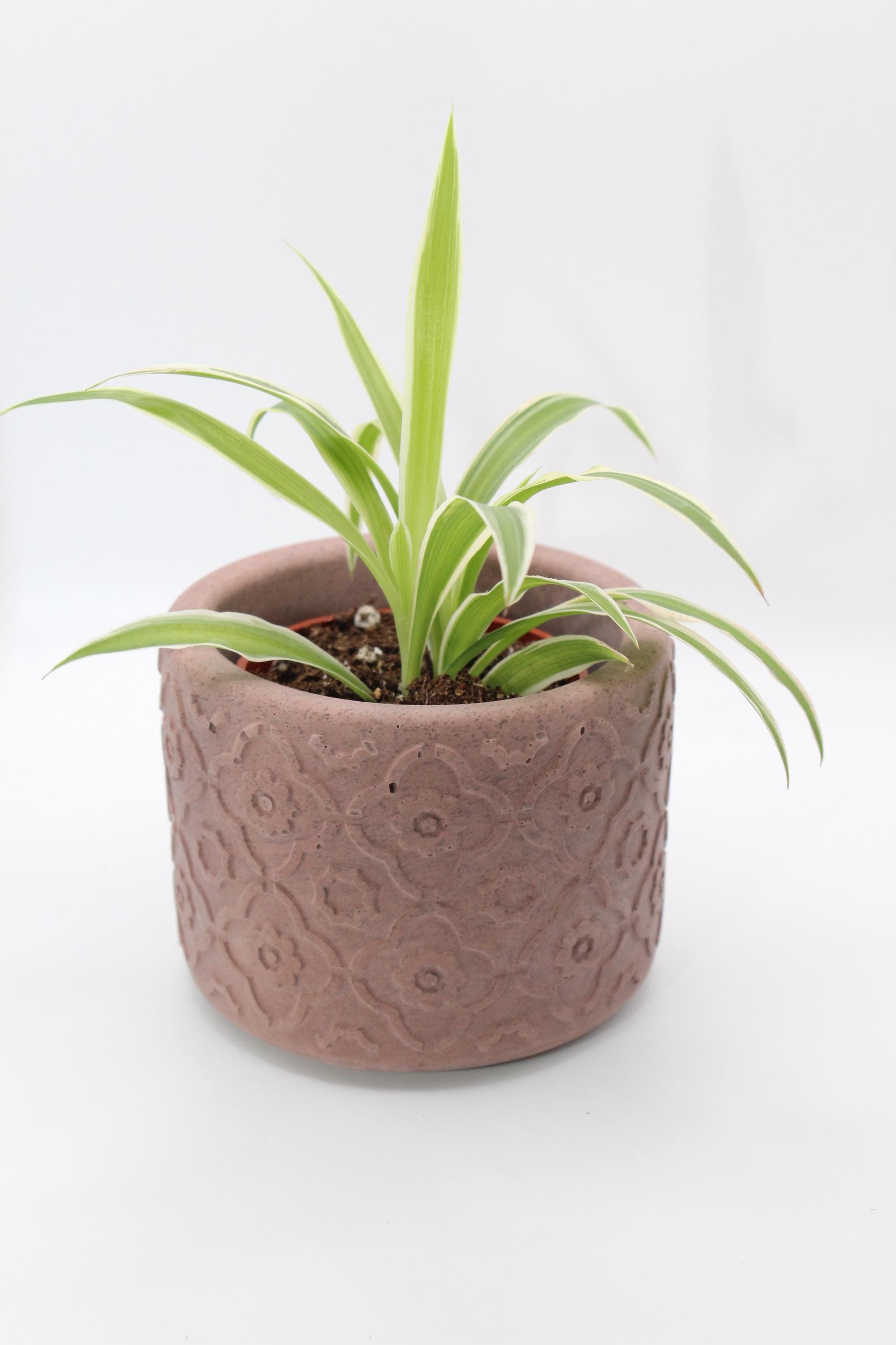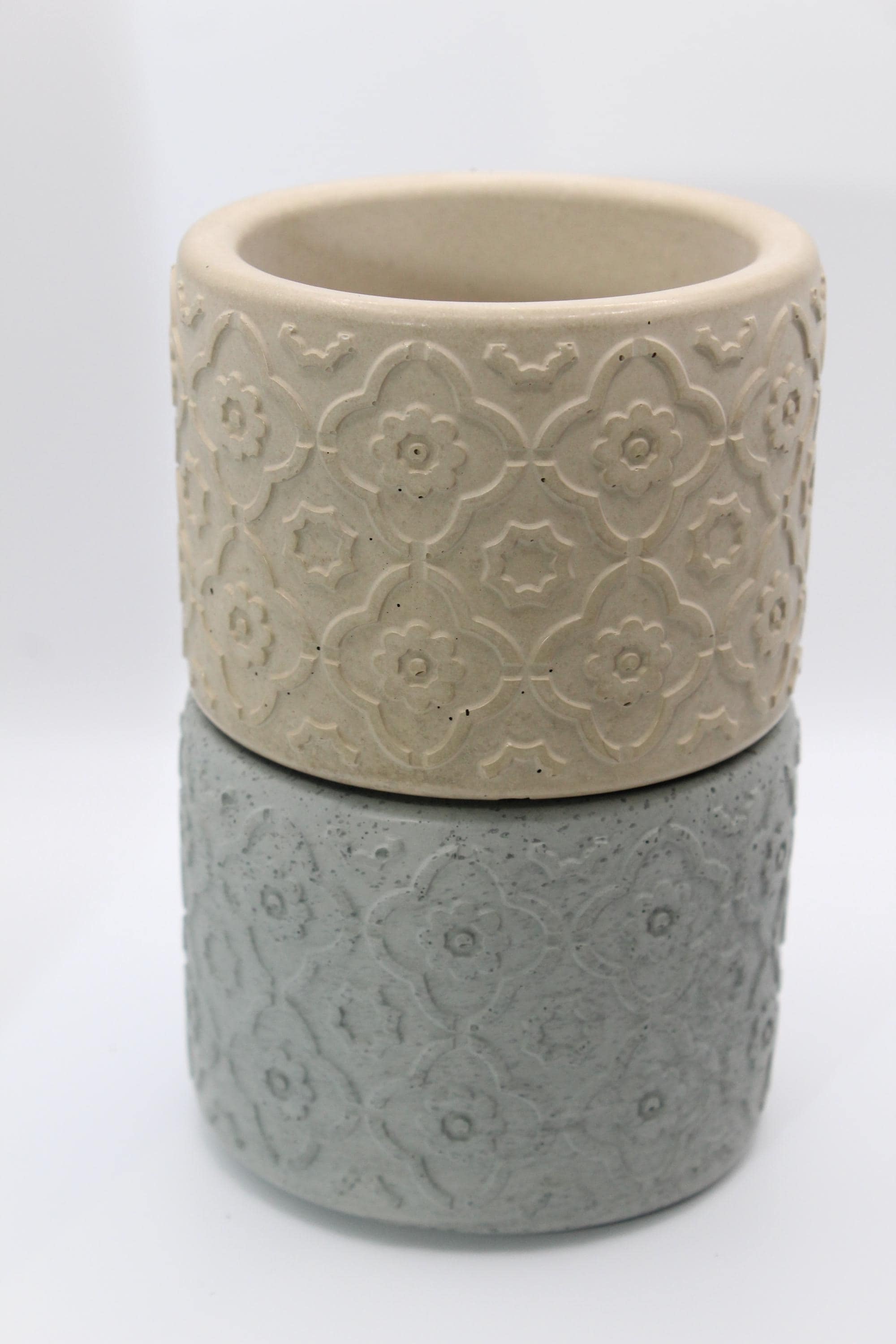 Elevate your plant display with this hand-poured concrete planter, thoughtfully designed to showcase your greenery while keeping a clean, modern look. Each piece features a hand-pressed botanical texture, adding subtle dimension and an organic feel to your space. Its soft, neutral tone blends effortlessly with any décor, making it the perfect home for your favorite small plants and a stylish accent for any shelf, windowsill, or tabletop.